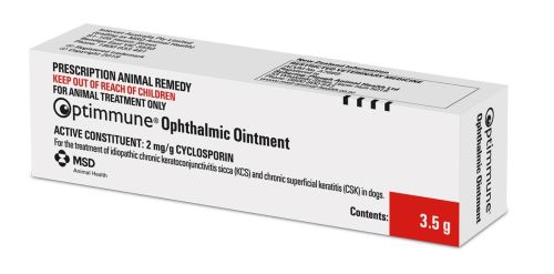 Optimmune Ophthalmic Ointment is prescribed for the treatment of Keratoconjunctivitis (dry eye) in dogs.
