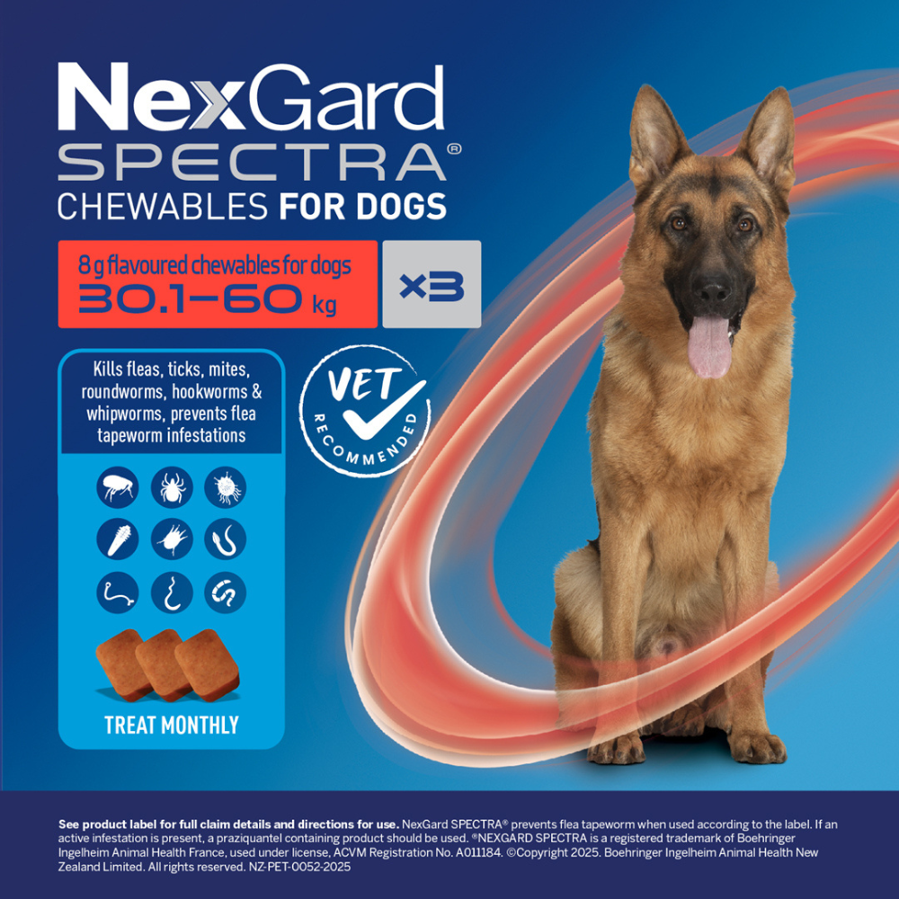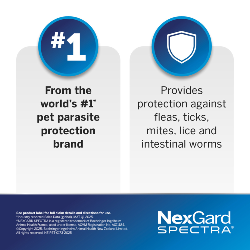 [{"id":47388155773149,"title":"1-Pack","option1":"1-Pack","option2":null,"option3":null,"sku":"1488","requires_shipping":true,"taxable":true,"featured_image":{"id":45267774669021,"product_id":9131702223069,"position":1,"created_at":"2025-10-15T20:53:55+13:00","updated_at":"2025-10-15T20:53:58+13:00","alt":null,"width":381,"height":500,"src":"\/\/myvet.co.nz\/cdn\/shop\/files\/biah_nexgard_spectra_full_version_xlarge_dog_1pk_2022.png?v=1760514838","variant_ids":[47388155773149]},"available":true,"name":"NexGard SPECTRA for Extra Large Dogs \u003e30kg - 1-Pack","public_title":"1-Pack","options":["1-Pack"],"price":2515,"weight":15,"compare_at_price":3399,"inventory_management":"shopify","barcode":"9421005652543","featured_media":{"alt":null,"id":36879425372381,"position":1,"preview_image":{"aspect_ratio":0.762,"height":500,"width":381,"src":"\/\/myvet.co.nz\/cdn\/shop\/files\/biah_nexgard_spectra_full_version_xlarge_dog_1pk_2022.png?v=1760514838"}},"requires_selling_plan":false,"selling_plan_allocations":[{"price_adjustments":[{"position":1,"price":2515}],"price":2515,"compare_at_price":2515,"per_delivery_price":2515,"selling_plan_id":6425280733,"selling_plan_group_id":"e9b3217990f4e2f70c100528328d4c2687e5016f"},{"price_adjustments":[{"position":1,"price":2515}],"price":2515,"compare_at_price":2515,"per_delivery_price":2515,"selling_plan_id":6425313501,"selling_plan_group_id":"e9b3217990f4e2f70c100528328d4c2687e5016f"},{"price_adjustments":[{"position":1,"price":2515}],"price":2515,"compare_at_price":2515,"per_delivery_price":2515,"selling_plan_id":6425346269,"selling_plan_group_id":"e9b3217990f4e2f70c100528328d4c2687e5016f"},{"price_adjustments":[{"position":1,"price":2515}],"price":2515,"compare_at_price":2515,"per_delivery_price":2515,"selling_plan_id":6425379037,"selling_plan_group_id":"e9b3217990f4e2f70c100528328d4c2687e5016f"},{"price_adjustments":[{"position":1,"price":2515}],"price":2515,"compare_at_price":2515,"per_delivery_price":2515,"selling_plan_id":6425411805,"selling_plan_group_id":"e9b3217990f4e2f70c100528328d4c2687e5016f"},{"price_adjustments":[{"position":1,"price":2515}],"price":2515,"compare_at_price":2515,"per_delivery_price":2515,"selling_plan_id":6425444573,"selling_plan_group_id":"e9b3217990f4e2f70c100528328d4c2687e5016f"},{"price_adjustments":[{"position":1,"price":2515}],"price":2515,"compare_at_price":2515,"per_delivery_price":2515,"selling_plan_id":6425477341,"selling_plan_group_id":"e9b3217990f4e2f70c100528328d4c2687e5016f"}],"quantity_rule":{"min":1,"max":null,"increment":1}},{"id":47388155805917,"title":"3-Pack","option1":"3-Pack","option2":null,"option3":null,"sku":"1491","requires_shipping":true,"taxable":true,"featured_image":{"id":46165920383197,"product_id":9131702223069,"position":2,"created_at":"2026-02-12T16:55:14+13:00","updated_at":"2026-02-12T16:55:15+13:00","alt":null,"width":381,"height":500,"src":"\/\/myvet.co.nz\/cdn\/shop\/files\/biah_nexgard_spectra_full_version_xlarge_dog_3pk_2022_7a759b89-5e9c-47f3-82c7-657273660548.png?v=1770868515","variant_ids":[47388155805917]},"available":true,"name":"NexGard SPECTRA for Extra Large Dogs \u003e30kg - 3-Pack","public_title":"3-Pack","options":["3-Pack"],"price":6310,"weight":15,"compare_at_price":7999,"inventory_management":"shopify","barcode":"9421005652550","featured_media":{"alt":null,"id":37731874996445,"position":2,"preview_image":{"aspect_ratio":0.762,"height":500,"width":381,"src":"\/\/myvet.co.nz\/cdn\/shop\/files\/biah_nexgard_spectra_full_version_xlarge_dog_3pk_2022_7a759b89-5e9c-47f3-82c7-657273660548.png?v=1770868515"}},"requires_selling_plan":false,"selling_plan_allocations":[{"price_adjustments":[{"position":1,"price":6310}],"price":6310,"compare_at_price":6310,"per_delivery_price":6310,"selling_plan_id":6425280733,"selling_plan_group_id":"e9b3217990f4e2f70c100528328d4c2687e5016f"},{"price_adjustments":[{"position":1,"price":6310}],"price":6310,"compare_at_price":6310,"per_delivery_price":6310,"selling_plan_id":6425313501,"selling_plan_group_id":"e9b3217990f4e2f70c100528328d4c2687e5016f"},{"price_adjustments":[{"position":1,"price":6310}],"price":6310,"compare_at_price":6310,"per_delivery_price":6310,"selling_plan_id":6425346269,"selling_plan_group_id":"e9b3217990f4e2f70c100528328d4c2687e5016f"},{"price_adjustments":[{"position":1,"price":6310}],"price":6310,"compare_at_price":6310,"per_delivery_price":6310,"selling_plan_id":6425379037,"selling_plan_group_id":"e9b3217990f4e2f70c100528328d4c2687e5016f"},{"price_adjustments":[{"position":1,"price":6310}],"price":6310,"compare_at_price":6310,"per_delivery_price":6310,"selling_plan_id":6425411805,"selling_plan_group_id":"e9b3217990f4e2f70c100528328d4c2687e5016f"},{"price_adjustments":[{"position":1,"price":6310}],"price":6310,"compare_at_price":6310,"per_delivery_price":6310,"selling_plan_id":6425444573,"selling_plan_group_id":"e9b3217990f4e2f70c100528328d4c2687e5016f"},{"price_adjustments":[{"position":1,"price":6310}],"price":6310,"compare_at_price":6310,"per_delivery_price":6310,"selling_plan_id":6425477341,"selling_plan_group_id":"e9b3217990f4e2f70c100528328d4c2687e5016f"}],"quantity_rule":{"min":1,"max":null,"increment":1}}]