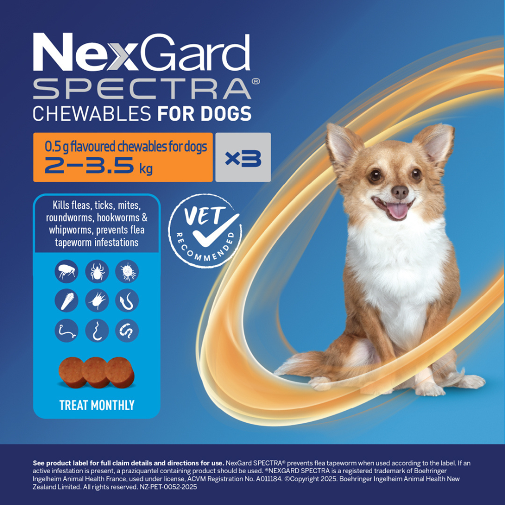 NEXGARD SPECTRA Chewables can be given with or without food. A convenient single chew suitable for all dogs in everyday situations.