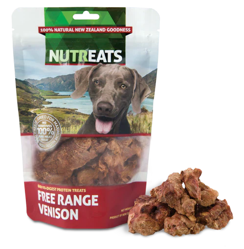Free-range Venison straight from New Zealand's fertile pastures, freeze-dried for maximum nutrition and popped into a resealable pack for your convenience. Venison treats have fewer calories but more protein than other types of meat. They are high in protein so great for helping dogs build strong bones.