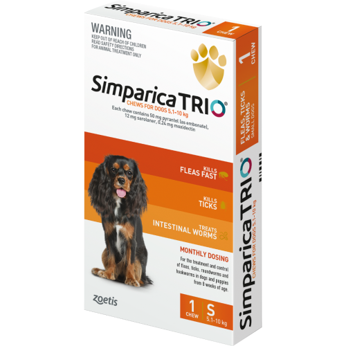 Simparica TRIO for Small Dogs 5.1-10kg - 3 Pack - Orange
