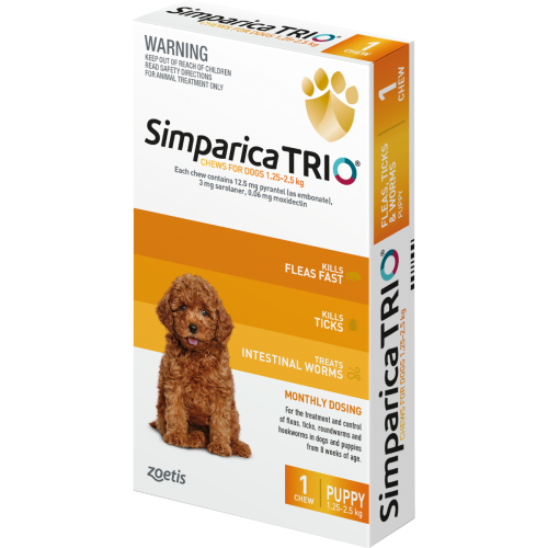 Simparica TRIO for Puppies 1.3-2.5kg - Single - Orange