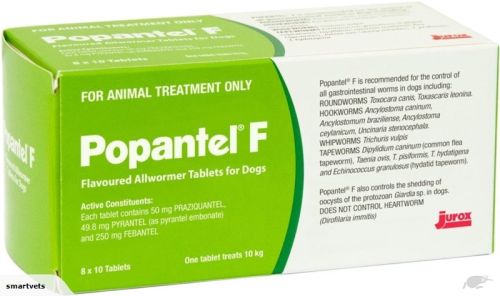 Popantel F Allwormer Tablets for Small and Medium Dogs up to 10kg x 80