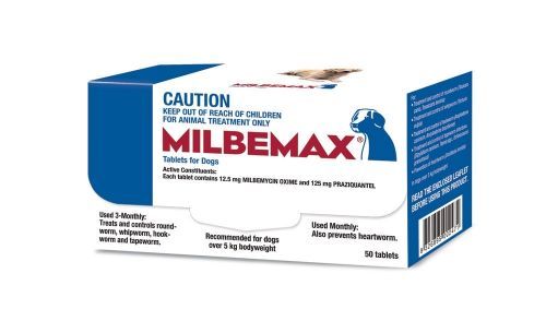 Milbemax broad spectrum all-wormer is suitable for all dogs, big or small. Treatment involves fewer tablets than some other leading brands: only one tablet for dogs up to 25kg; two tablets for dogs up to 50kg. So Milbemax makes it easier to deliver the right dose to your dog or puppy.