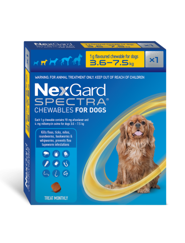NexGard SPECTRA for Small Dogs 3.6-7.5kg - Single Tablet
