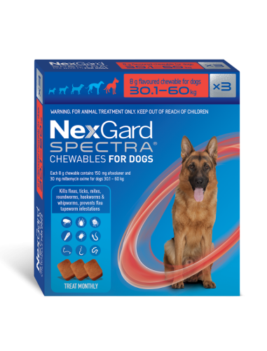 NEXGARD SPECTRA Chewables can be given with or without food. A convenient single chew suitable for all dogs in everyday situations.