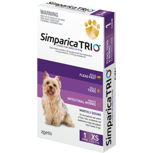 Simparica TRIO for Extra Small Dogs 2.6-5kg Purple - Single