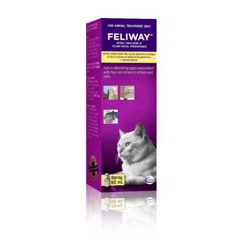Feliway provides an effective way to control and manage feline urine marking. Feliway mimics the facial pheromones produced by cats, resulting in an emotional calming, which reduces a cat's impulse to mark its territory. Proven to help reduce cat stress during a home move, transportation, hospitalization, boarding, introduction of another cat, animal or person.