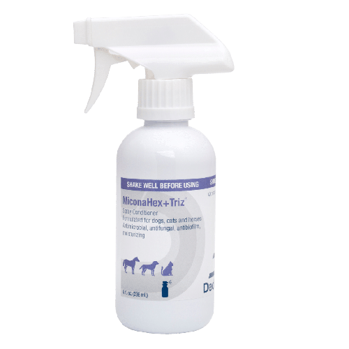 For support of healthy skin for animals with conditions responsive to miconazole and/or chlorhexidine. Ceramides aid in moisturizing, repairing, and restoring dry, damaged skin. MiconaHex+Triz is for minor skin conditions only. Seek veterinary advice if the product fails to alleviate the condition being treated.